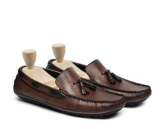 Driver are a Native American Style of shoe that can be made from different types of materials. We used some scrap leather and some suede laces to make our Driver Shoes. This is a very easy project and you can make them in any size you want. You just need to cut your material to the desired length, fold it in half, and then use some hot glue or stitches to close up the sides.